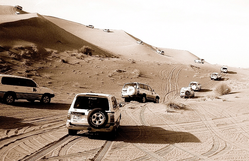 The Omani desert is a large expanse of sand dunes extending 200km from the mountains of the Eastern Hajar down to the Arabian Sea. The best known of these is Sharqiyah Sands (formerly known as the Wahiba Sands) with its dunes rising to an imposing 200m.